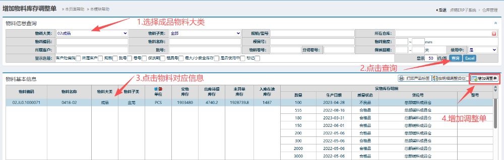 ![]() ![]() 本教程是针对BOE成品返退流程中返退来源为“自主重工”,需要进行物料状态调整。 注:如果是正常BOE返退品的话可直接到最下方的“BOE返退品流程”! 1.进入ERP系统之后,在左侧的功能菜单里找到“仓库管理”,点开“物料在库管理”,点击“新增物料状态调整单”。 2.进入界面后,按图操作:物料大类选择成品,点击查询。然后点击对应物料信息,点击增加调整单。 在调整单界面内,按图操作:质量状态调整为BOE返退品,调整库存数量以及选择对应的仓库。最后点击提交。