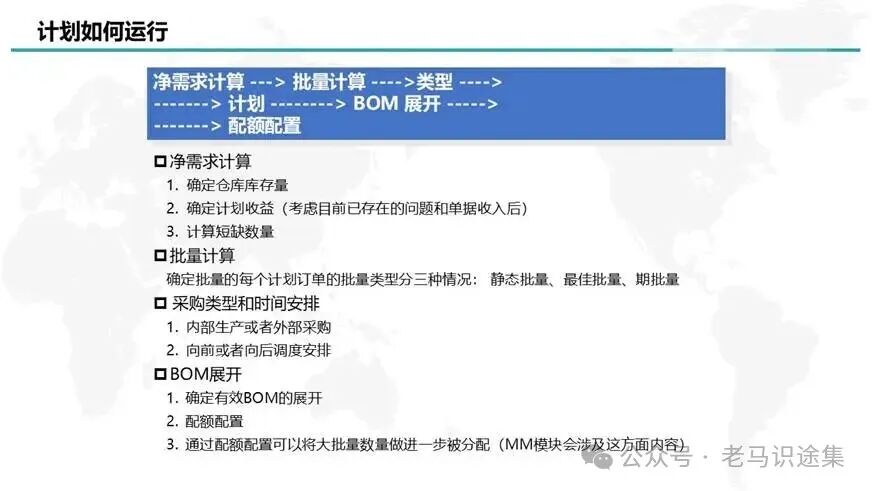 温过而知新,本次学习过程中,将掌握了一个新的知识点:需求与供给Pegging Relationships,可以追溯需求的来源。MRP运算还真是个挺复杂的计算过程,应该是ERP里最最复杂的计算过程之一,主要分为5个步骤,分别是:1净需求计算->2批量计算->3获取采购类型->4时间排程->5BOM展开。详细内容如下: 阅读原文: 点晴模切ERP更多信息:http://moqie.clicksun.cn,联系电话:4001861886 该文章在 2025/10/9 10:47:07 编辑过 |