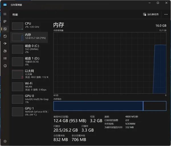 这里我们需要了解,现在的软件到底有多占用内存。目前大多数笔记本搭载的是16GB内存,看似很大,但如果日常办公中需要同时开启Edge浏览器和Photoshop,并且挂着聊天软件的话,16GB内存大概率是不够用的。