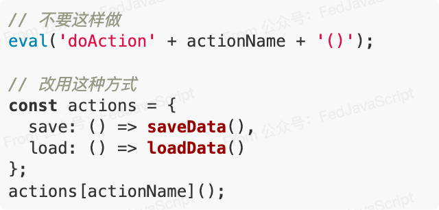 “不要使用eval()。它使代码容易受到注入攻击,并且使JavaScript引擎难以进行优化。”