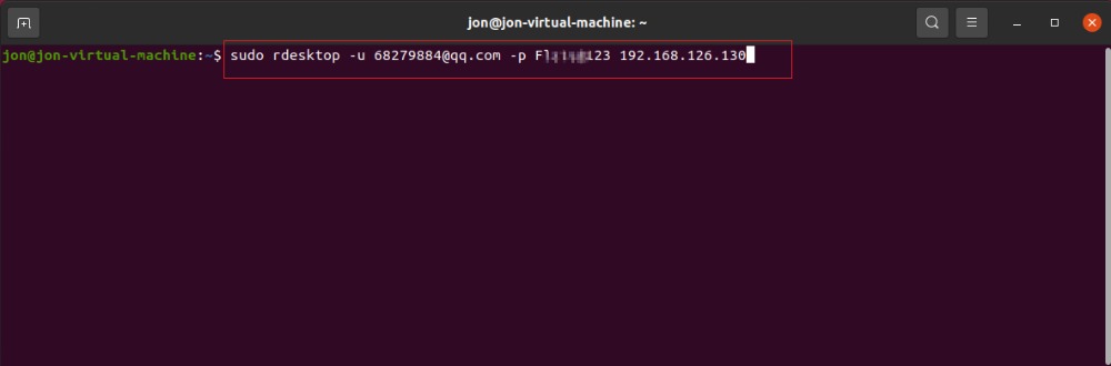 sudo rdesktop -u 用户名 -p 密码 IP地址