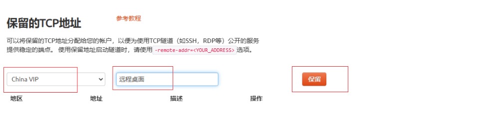 • 预留的TCP地址:填写官网保留成功的地址,