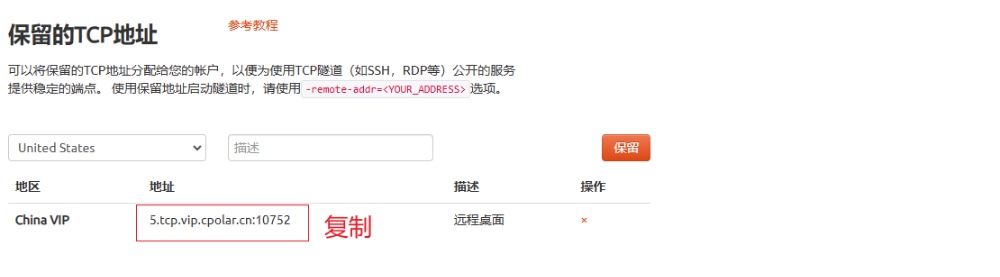 地址保留成功后,系统会生成相应的固定公网地址,将其复制下来